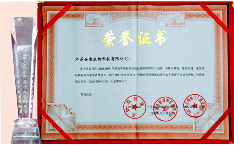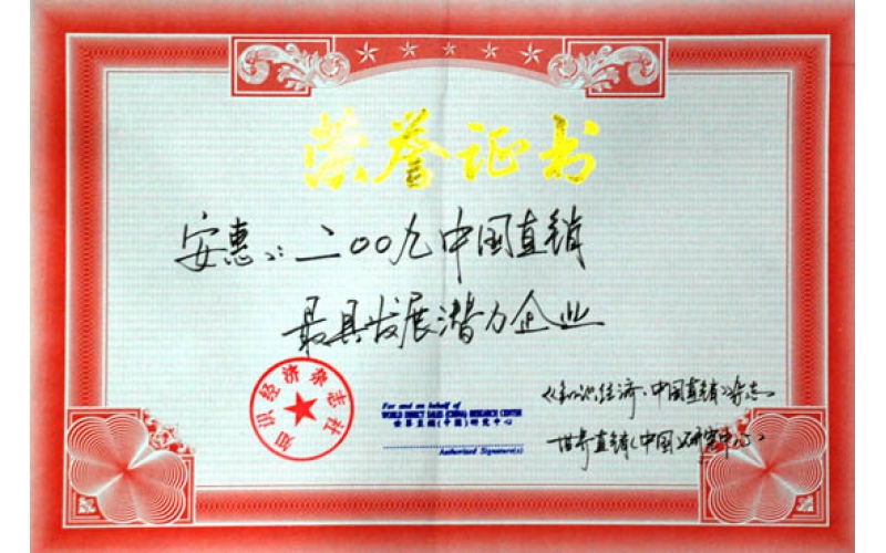 2009年6月,安惠公司被評為2009中國直銷最具發展潛力企業。