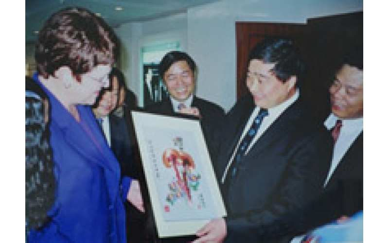 2004年9月,新西蘭前總理凱樂.希普莉女士來公司參觀,陳惠董事長(zhǎng)向希普莉女士贈(zèng)送禮品。