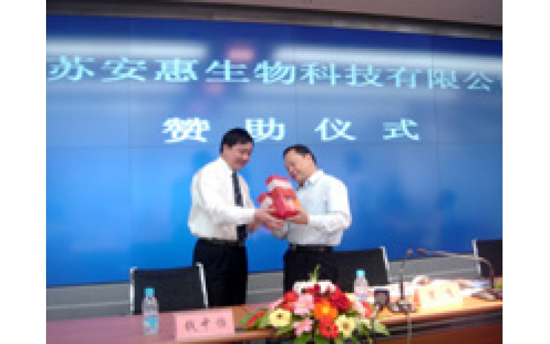 2004年9月24日,陳惠董事長(zhǎng)向南通市副市長(zhǎng)宋飛捐贈(zèng)的公司產(chǎn)品作為首屆世界大城市帶發(fā)展高層論壇專用保健品。