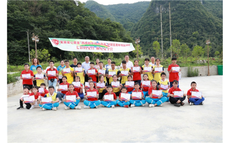 2018年是安惠愛心基金“西南助學(xué) 陽光沐浴”計(jì)劃實(shí)施的第五年。每年安惠江海志愿者們都會(huì)來到貴州省獨(dú)山縣麻尾鎮(zhèn)開展愛心助學(xué)活動(dòng),與這里的師生們相聚。7月8-12日,志愿者們帶著6名南通的孩子們?cè)俅翁ど线@片土地,和當(dāng)?shù)貙W(xué)生互動(dòng)、交流、學(xué)習(xí),一起度過一段非常有意義的快樂時(shí)光。安惠公司副董事長(zhǎng)陸漢萍也專程來到麻尾,看望一直牽掛著的學(xué)生們,走訪受資助的學(xué)生,并實(shí)地了解空氣能熱水器的使用情況。